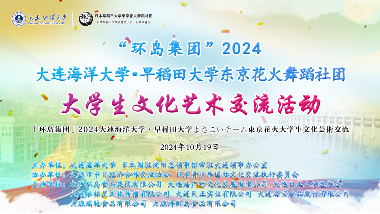 10月19日,由大連環(huán)島食品集團(tuán)獨家贊助的 “2024大連海洋大學(xué)·早稻田大學(xué)東京花火舞蹈社團(tuán)大學(xué)生文化交流活動”在大連海洋大學(xué)黑石礁校區(qū)舉行。中日大學(xué)生以舞為媒,共同打造了一場璀璨奪目、跨越國界的藝術(shù)盛宴。本次活動由大連海洋大學(xué)、日本國駐沈陽領(lǐng)事館常駐大連領(lǐng)事辦公室主辦;大連市中日經(jīng)濟(jì)合作交流協(xié)會、日本青少年國際文化交流執(zhí)行委員會協(xié)辦;大連環(huán)島食品集團(tuán)有限公司獨家冠名贊助。大連海洋大學(xué)各級領(lǐng)導(dǎo),…